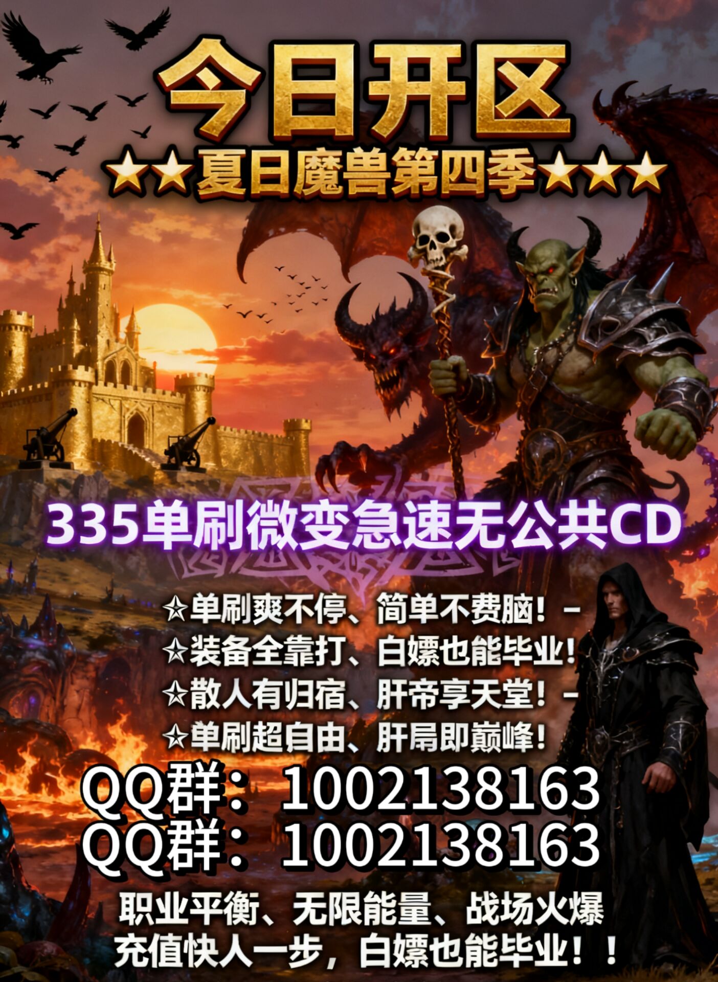 ▅▆▇☞精品急速服☜▇▆▅今日开区★★★夏日魔兽第四季★★★335单刷微变急速无公共CD〓单刷爽不停、简单不费脑!〓〓装备全靠打、白嫖也毕业!〓〓散人有归宿、肝帝享天堂!〓〓单刷超自由,开局即巅峰!〓职业平衡、无限能量、战场火爆充值快人一步,白嫖也能毕业➽新人起步福利:转发5个群或论坛奖励游戏货币5千、50碎片(每日可做)Q群:1002138163Q群:1002138163Q群:1002138163